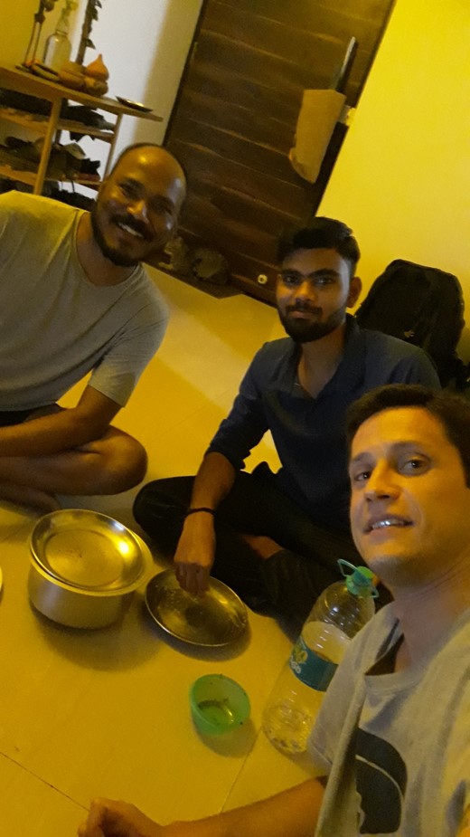 Año nuevo en India, alojado por locales. Me alojaron a través de la página Couchsurfing donde la gente te hospeda gratis, así fue que estuve una semana en su casa y pasamos un año nuevo muy tranquilo los tres, sin tomar alcohol, y sólo salimos a la calle del barrio porque como estaba yo me querían mostrar. Cosa que fue muy tranquila, solo algunas familias tirando algunos fuegos artificiales. Mumbai, India, 1° de enero 2020
