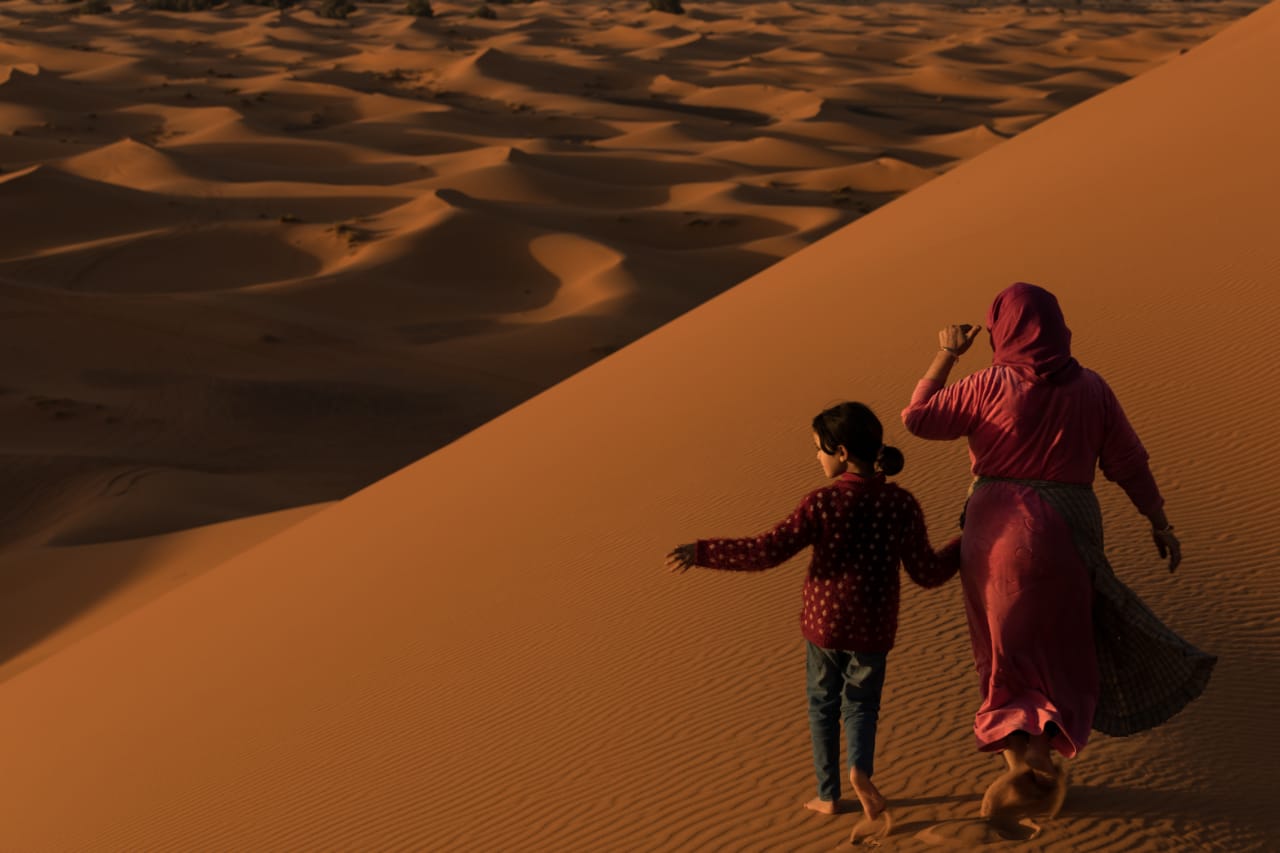 Y bueno, después Marruecos, que Navidad no se festeja, así que pasó como un día más. Aunque en el Islam se lo tiene a Jesús también como un profeta, no se festejan las fiestas del catolicismo.Y acá están la querida «Abuela y nieta del Sahara». La abuela aceptó que le saque una foto pero con el rostro tapado. La familia que me invitó a comer en el desierto y luego pasamos la tarde caminado por las dunas, mostrándome sus lugares preferidos.