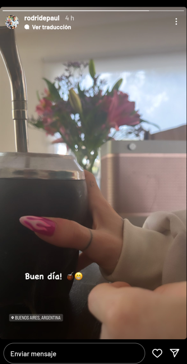 Pero… llegó el momento de contarle al mundo lo que pasa entre ambos: es que el futbolista subió una foto en las historias de Instagram con la mano de Tini, sosteniendo un mate.