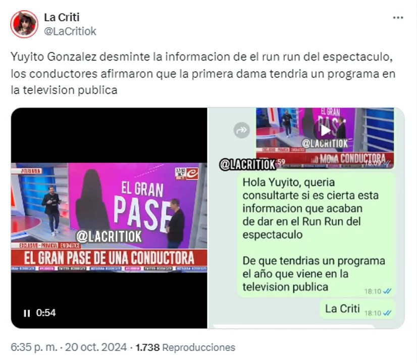 «Creemos que Amalia González en una gran profesional con una destacada trayectoria que la ha convertido en una referente de la televisión. Sería sin dudas un honor poder contar con su prestigio en una pantalla como la de Televisión Pública; sin embargo, reiteramos, no ha habido contacto alguno y los rumores que circularon son infundados«, concluyeron.