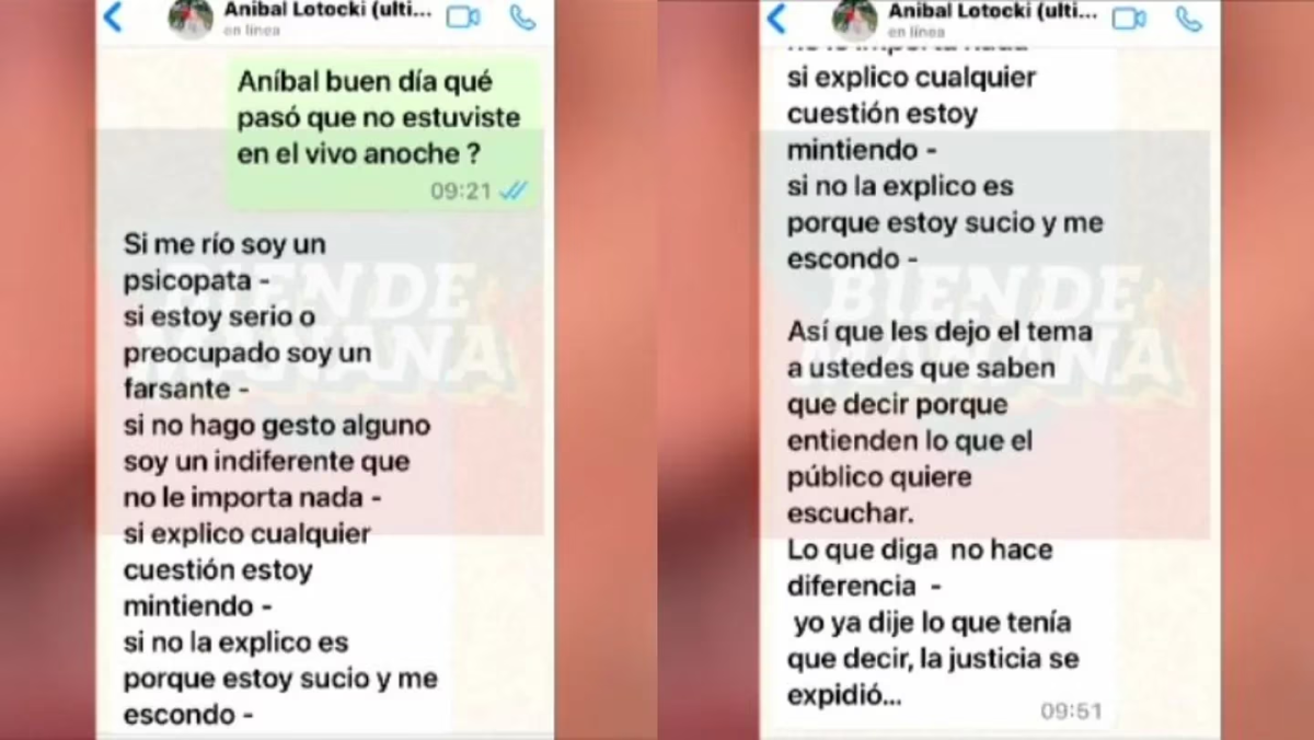 “Si explico cualquier cuestión estoy mintiendo, si no la explico es porque estoy siendo sucio y me escondo”, continuó Aníbal en su mensaje. Y concluyó tajante: “Lo que diga no hace la diferencia, yo ya dije lo que tenía que decir, la Justicia se expidió”.