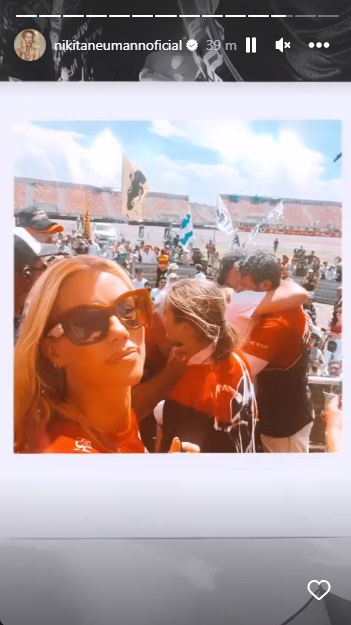 La modelo estaba acompañando a su pareja desde las pruebas preliminares que se disputaron este sábado, según ella misma registró en su cuenta oficial. Y hoy todo fue alegría.