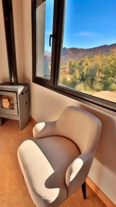 Exteriormente, se observa una combinación de piedra y madera, propia de la construcción de la casa, además de amplios ventanales apuntados a la vista agreste que habilitan el ingreso de la luz natural.