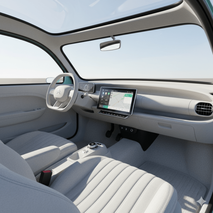 - Asientos y tapicería: Diseñados ergonómicamente y tapizados en materiales reciclados y ecológicos, manteniendo la comodidad característica del 3CV.