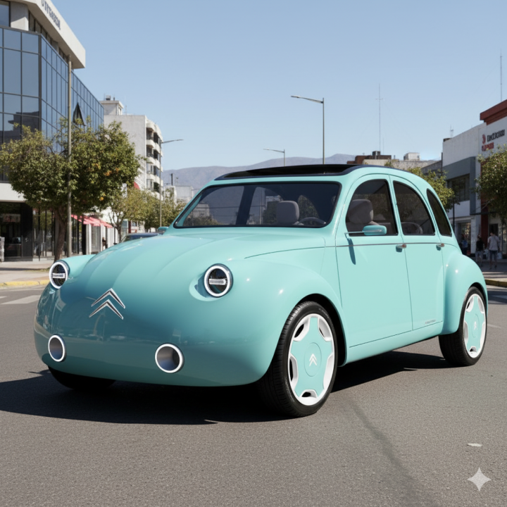 Basado en recreaciones y en las tendencias del mercado automotriz de 2025, así sería un hipotético Citroën 3CV moderno.