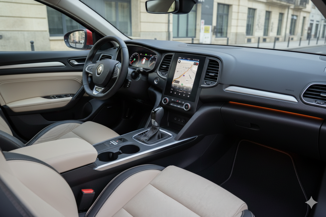El interior del Renault 18 2026, presenta una combinación de comodidad y tecnología. Un tablero digital moderno, una pantalla táctil central para el infoentretenimiento, asientos ergonómicos con tapicería de alta calidad y detalles en aluminio cepillado para un toque de sofisticación. Mantendría la amplitud característica del R18, pero con un ambiente mucho más refinado y conectado.