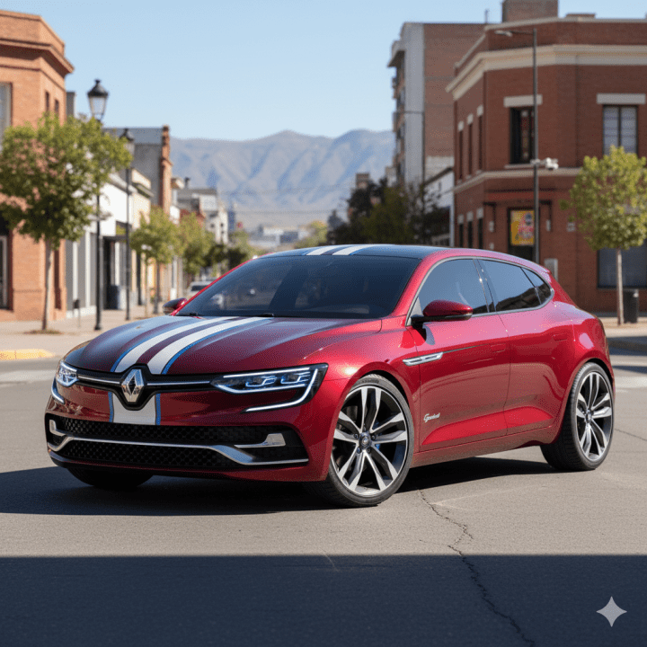 Desde la creación de la IA, el Renault Gordini modelo 2025, seguiría teniendo un espíritu deportivo y elegante, pero con un toque contemporáneo.