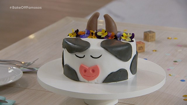 La consigna de la prueba creativa era «El animal favorito de tu infancia», por lo cual el modelo optó por realizar una torta con forma de vaca , con el fin de recordar los viajes al campo con su familia.