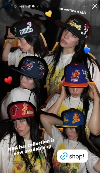 Billie Eilish sorprendió con una colaboración oficial con la NBA: así son las nuevas gorras