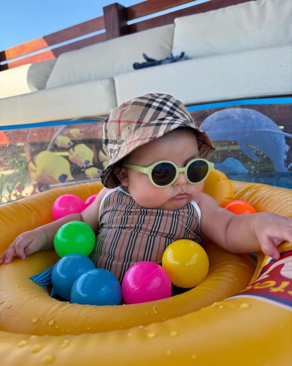 Esta mañana, la intérprete de «Mucha Data» decidió compartir más fotos de Inti y subió varias postales de su vida como madre. En el posteo de Instagram se puede ver a la bebé en una pileta un sombrero y unos pequeños lentes de sol, también se la ve muy sonriente en los brazos de su mamá y hasta contenta en la sala de pediatría.