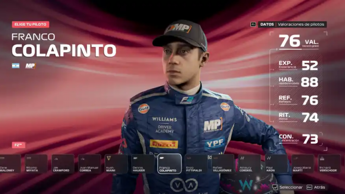 Tras reemplazar a Jack Doohan en la escudería, Colapinto deja atrás su rol exclusivo en la F2 dentro del juego para convertirse en titular, compartiendo equipo con el experimentado Pierre Gasly. Esto marca un momento histórico, ya que es el primer argentino en formar parte de la parrilla oficial del juego en más de 20 años, un orgullo para los fans albicelestes.