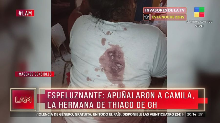 «Sufrió unas puñaladas en su cuerpo y por eso se le ve la remera blanca repleta de sangre. Ella lo que declaró es que la atacaron con un ‘cuchillito’ y que son vecinos que viven a la vuelta de su casa» contó al respecto la panelista Estefi Berardi, quien tiene contacto con la familia del participante del reality de Telefe.