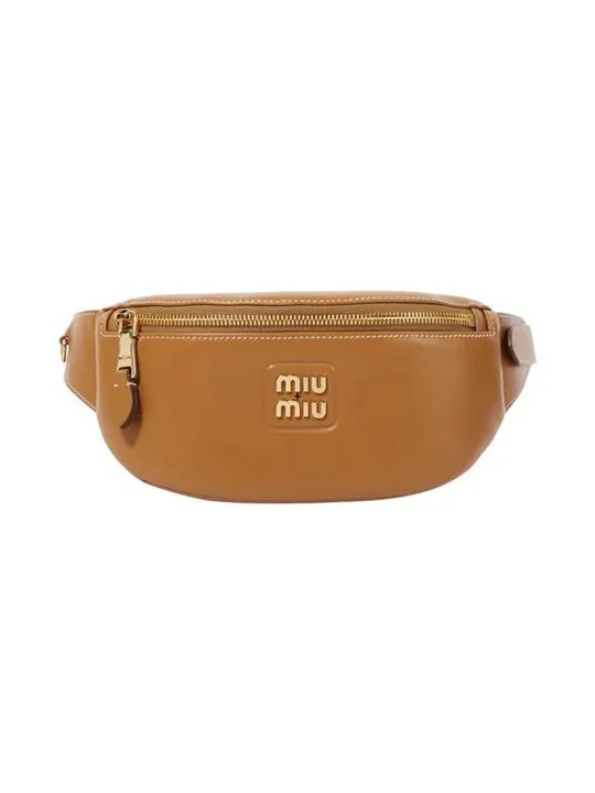 En última instancia, dos riñoneras para usar en 2025, porque serán tendencia, son la de piel de Miu Miu que se caracteriza por tener un color en marrón caramelo y confeccionada de piel de becerro con una tira ajustable.