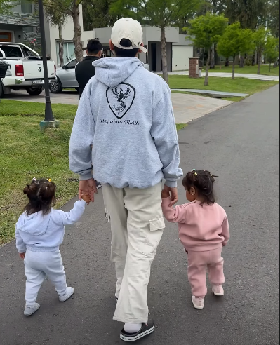 Este domingo, los visitó su amiga y excompañera del reality, Julieta Poggio, quien publicó una tierna postal del joven caminando de la mano con sus hijas gemelas.