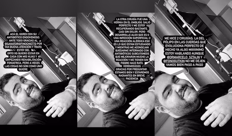 Además de la cirugía de las cuerdas vocales, Barassi también se sometió a una operación por una hernia umbilical. La recuperación de esta última intervención también está evolucionando favorablemente.