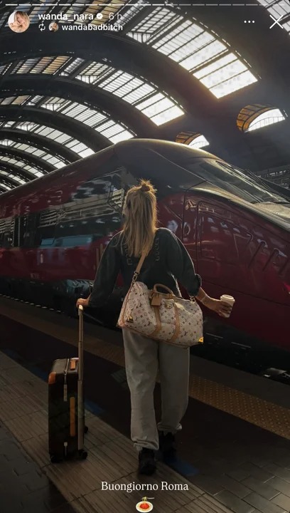 Wanda compartió en sus redes sociales fotos de su llegada a Roma en tren y de su presencia en la Rai, la señal donde se graba el reality.