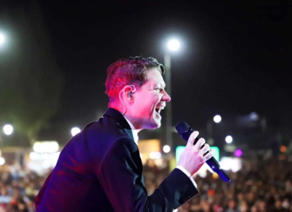 Tras su paso por la Fiesta de la Manzana, el artista aterrizó en la Comarca Andina para el gran cierre. Antes del show, recorrió la feria de artesanos y subió hasta Cabeza del Indio.