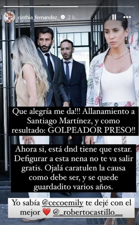 Finalmente, fue la propia Cinthia Fernández la encargada de darla noticia sobre la detención de Santiago Martínez, a quien encontraron en la casa de sus padres.