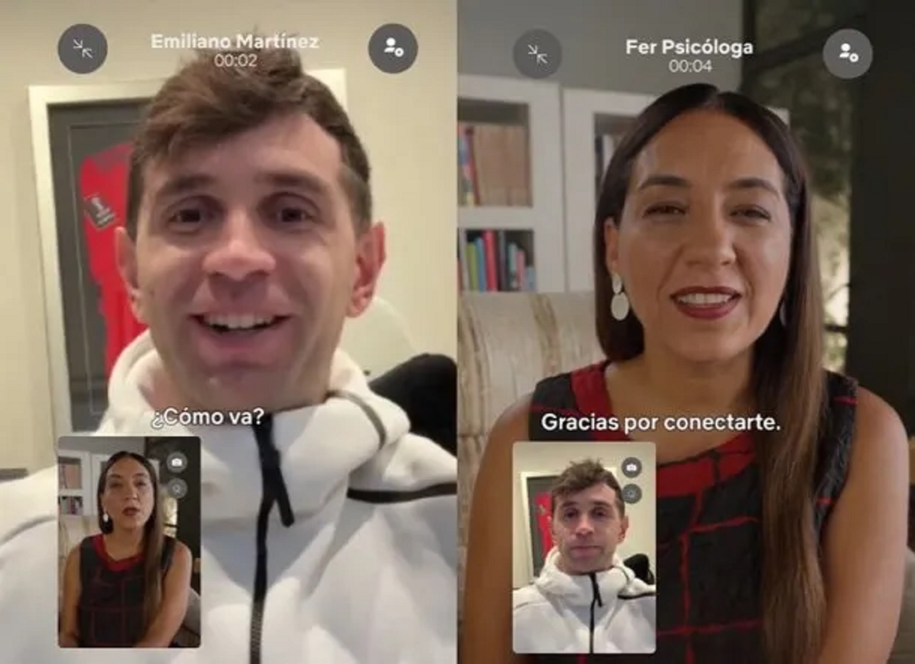 En el divertido video que publicó la cuenta @CheNetflix, se puede ver a ambos en pleno diálogo por videollamada, dado que el arquero se encuentra en Inglaterra. «Hola Emiliano, gracias por conectarte, te cité porque tenemos que reorganizar las sesiones… con la diferencia horaria, nos tenemos que organizar mejor, pero antes… ¿cómo estás?», dice Fernanda, luego del saludo del Dibu.