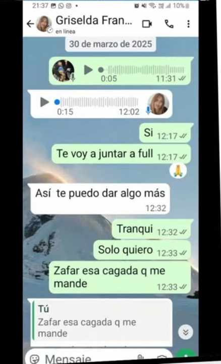 En el programa «Ensobrados«, que es transmitido por Youtube, Diego Moranzoni mostró capturas de pantalla de los chats con Griselda Franco, la denunciante de la causa.