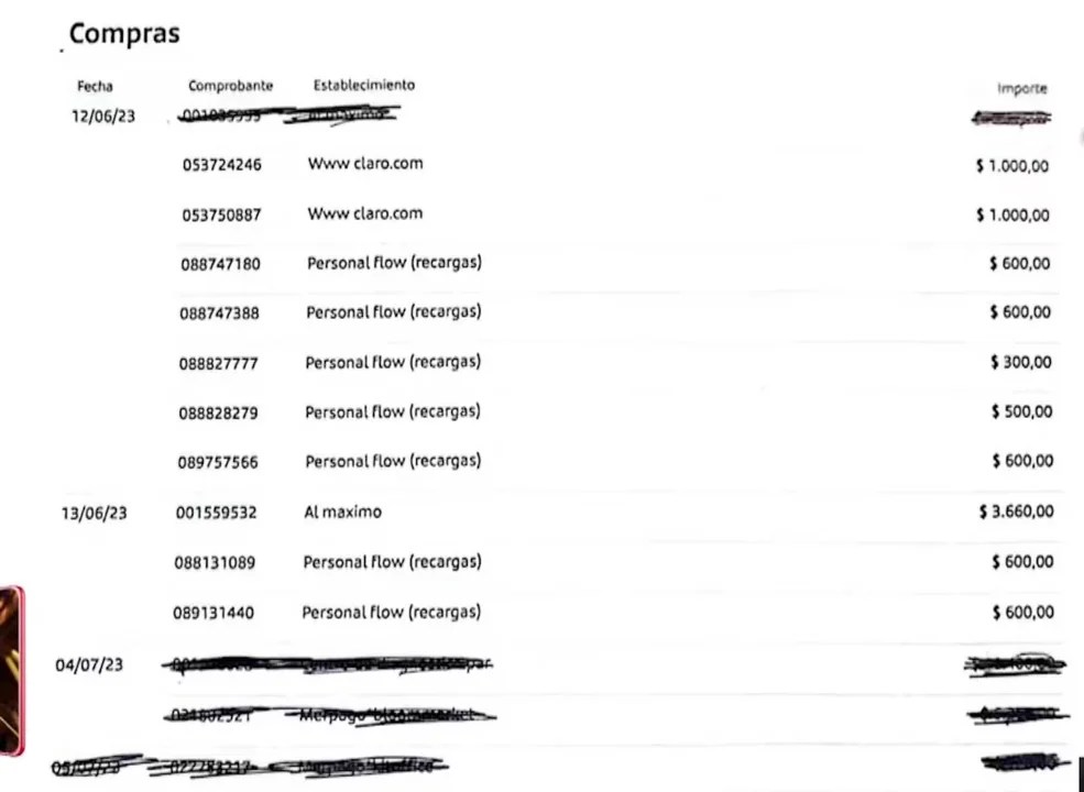 Según mostró el conductor, los gastos realizados eran para alquilar películas en sitios de streaming y cargar celulares prepagos: “Todos microgastos para que no se note”.