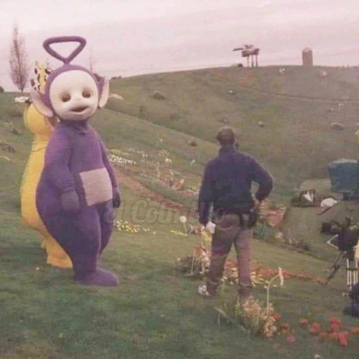 Divulgan desconocidas fotos de los actores de «Los Teletubbies» en plena filmación