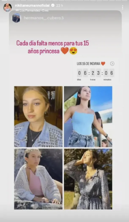 A pocos días de que Indiana Cubero cumpla los 15, Nicole Neumann se acercó a ella a través de un posteo de Instagram que rezaba: “Cada día falta menos para tus 15 años, princesa”, con emojis de carita enamorada.
