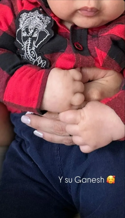 Neumann compartió una historia de Instagram basada en una foto de su hijo con un conjunto de ropa rojo y negro, en la que se pudo ver un amuleto: «Y su ganesh». Éste se trata de un dibujo de un elefante, símbolo del hinduismo y el budismo, que sirve para evitar el mal de ojo, las malas energías y las intenciones dañinas. Dado que los bebés suelen ser el centro de atención de los lugares a los que acuden, es acertada la decisión de Neumann de colocarle a su hijo este amuleto.