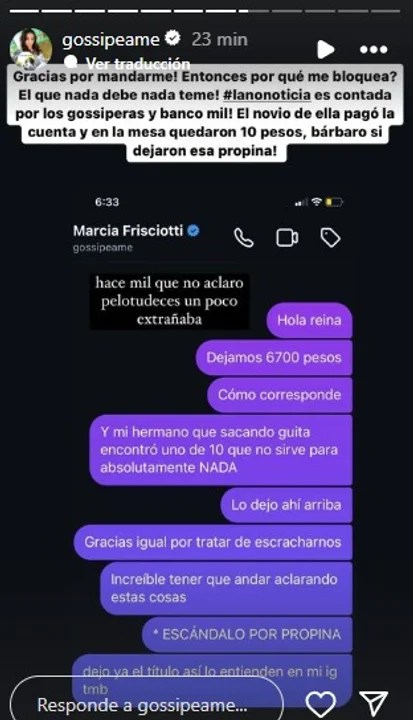 Frente a esto, Frisciotti acotó: “Gracias por mandarme, entonces, ¿por qué me bloqueas?. El que nada debe, nada teme”.