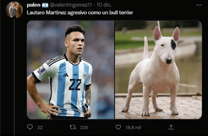 “Lautaro Martínez agresivo como un Bull Terrier. ‘Dibu’ Martínez un labrador. Inteligente y carismático”, Sugió el usuario.