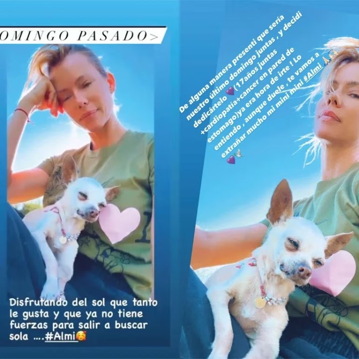 Finalmente, este sábado la modelo dio a conocer la triste noticia de la muerte de Almi, nuevamente con una imagen acompañada de un emotivo texto. “Ya era hora de irte, lo entiendo aunque duele. Te vamos a extrañar mucho, mi mini mini Almi”, compartió ante sus seguidores.
