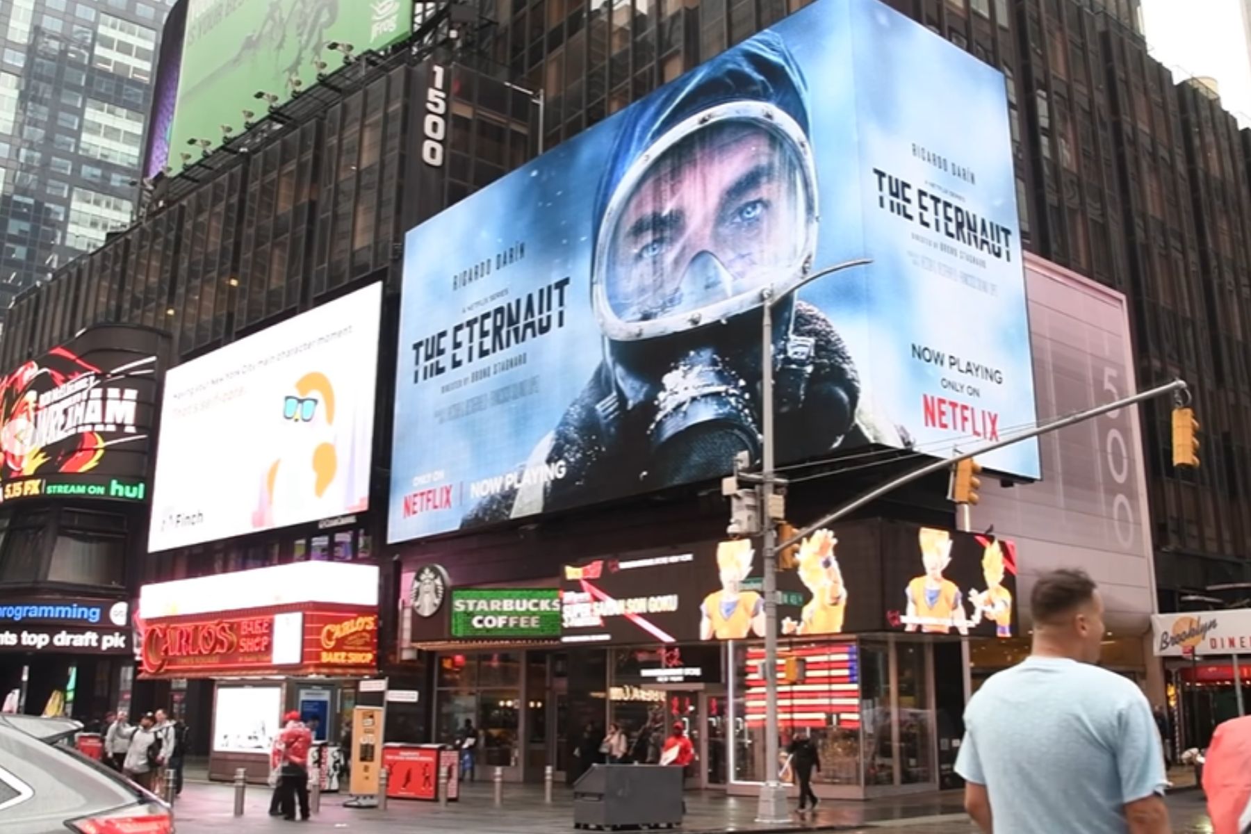 Ahora, se puede ver una publicidad de El Eternauta en una de las calles más transitadas del mundo: Times Square, en Manhattan. «Mirá cómo le bendecimos el Times Square a los de Nueva York, la cultura argentina y El Eternauta están en todos lados», escribieron desde la cuenta oficial de Netflix Argentina y adjuntaron un vídeo donde se ve la imagen de Darín como Juan Salvo en una de las gigantescas pantallas del punto turístico.