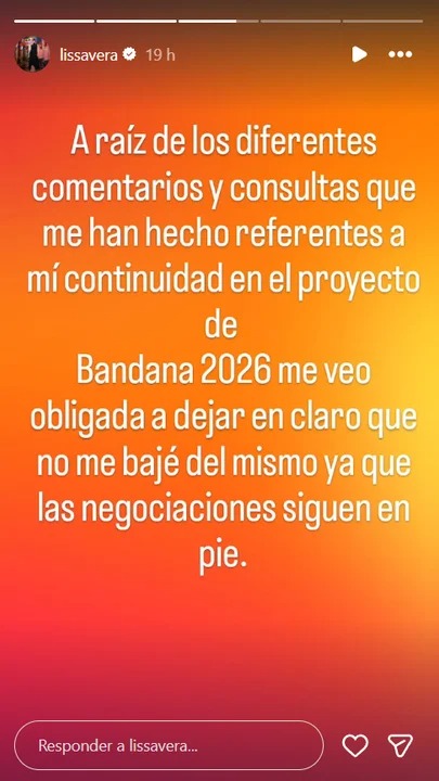 Lissa Vera desmintió su salida de Bandana y aclaró su futuro en el proyecto 2026