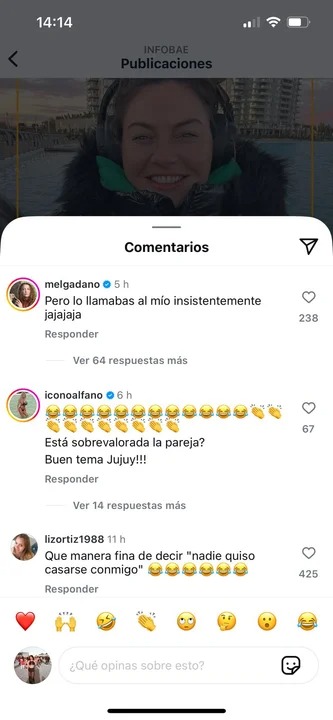 Un portal levantó el texto de la modelo y, mientras en los comentarios señalaban que se trataba de un “palito” para la China Suárez, destacó el comentario de la periodista de C5N, Mel Gadano, acusándola de “llamar insistentemente” a su pareja.