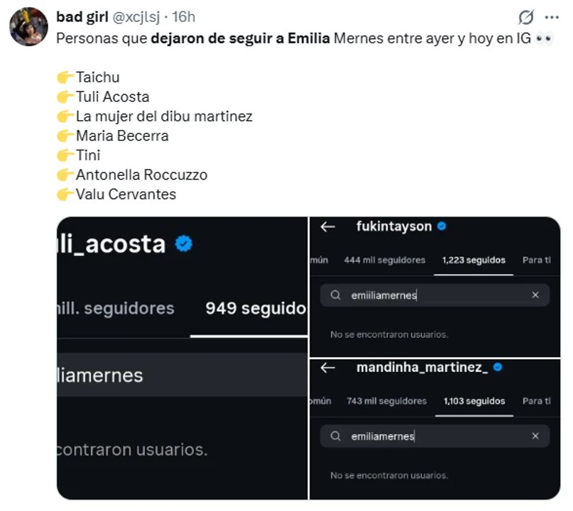 El escándalo escaló cuando se sumaron los nombres de otras artistas a la lista de “no seguidos” de Emilia, entre ellas el de Antonela Roccuzzo.