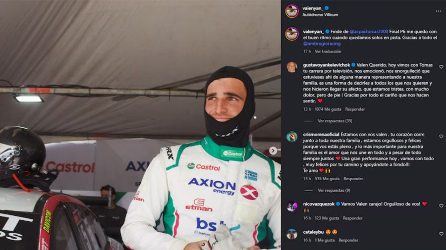 Gustavo Yankelevich aprovechó para felicitarlo y le dedicó especiales palabras: «Valen querido, hoy vimos con Tomás tu carrera por televisión; nos emocionó y nos enorgulleció que estuvieras ahí, de alguna manera representando a nuestra familia».