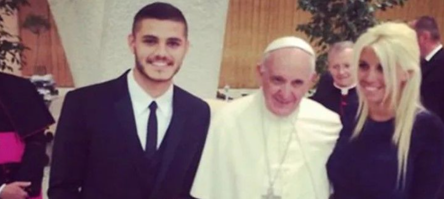La conductora publicó una foto de ella con Francisco durante su visita al Vaticano a propósito de disputarse el partido por la Paz, un evento organizado por Francisco y la fundación del «Pupi» Zanetti para difundir un mensaje de tolerancia interreligiosa. La imagen de septiembre de 2014 está recortada de una más amplia en donde también está Mauro Icardi.