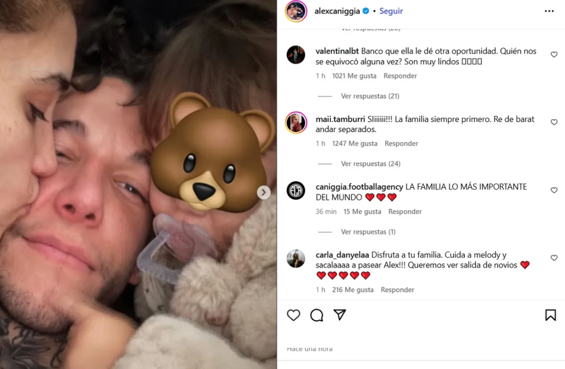 Alex Caniggia compartió un particular mensaje y foto en las redes sociales con Melody Luz y su hija tras la escanalosa separación que confirma la reconciliación.