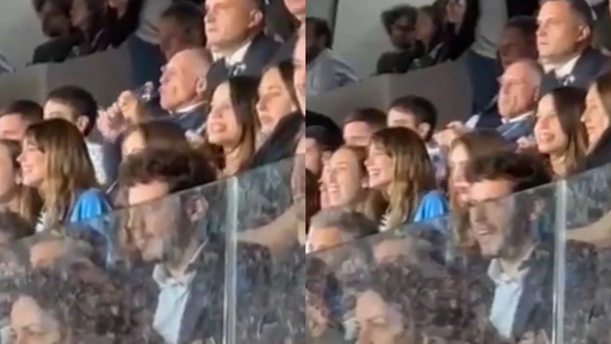 Las cámaras de los hinchas lograron captar las imágenes de las tres cantantes sentadas juntas adelante de Chiqui Tapia.