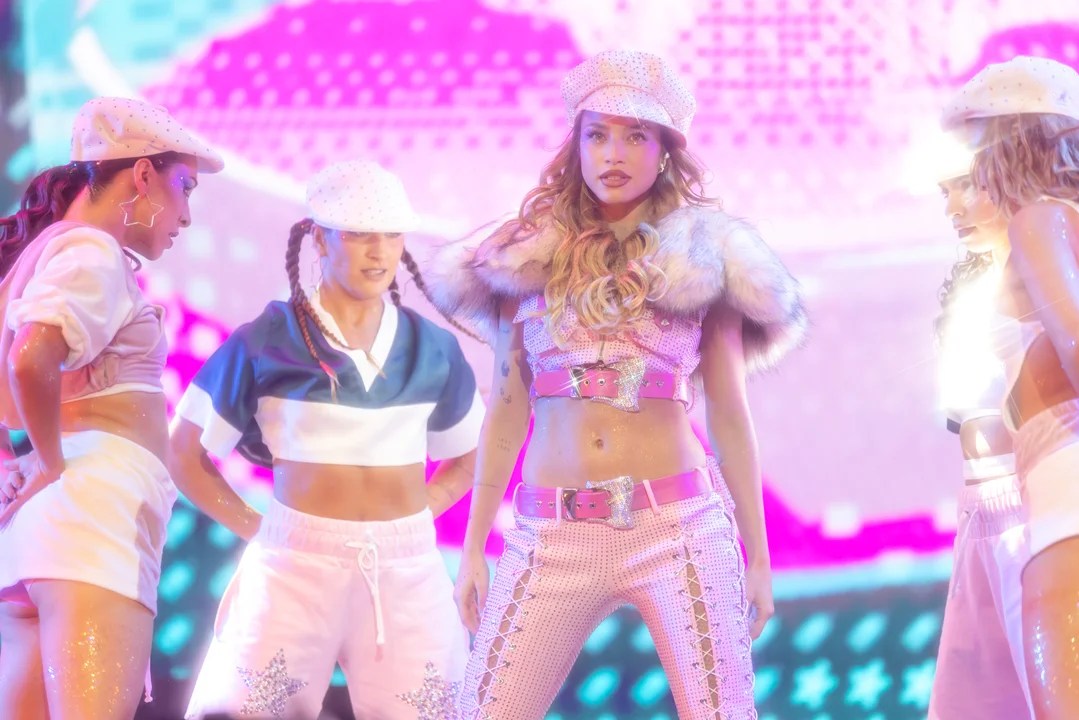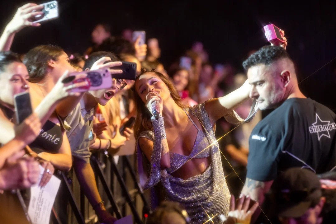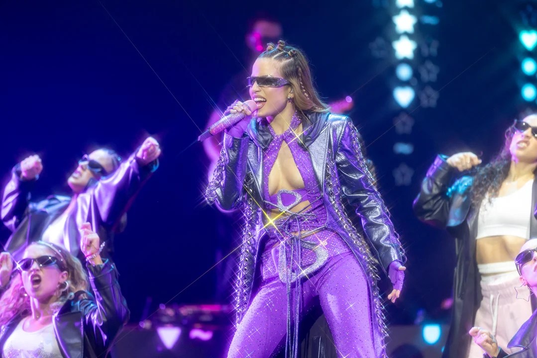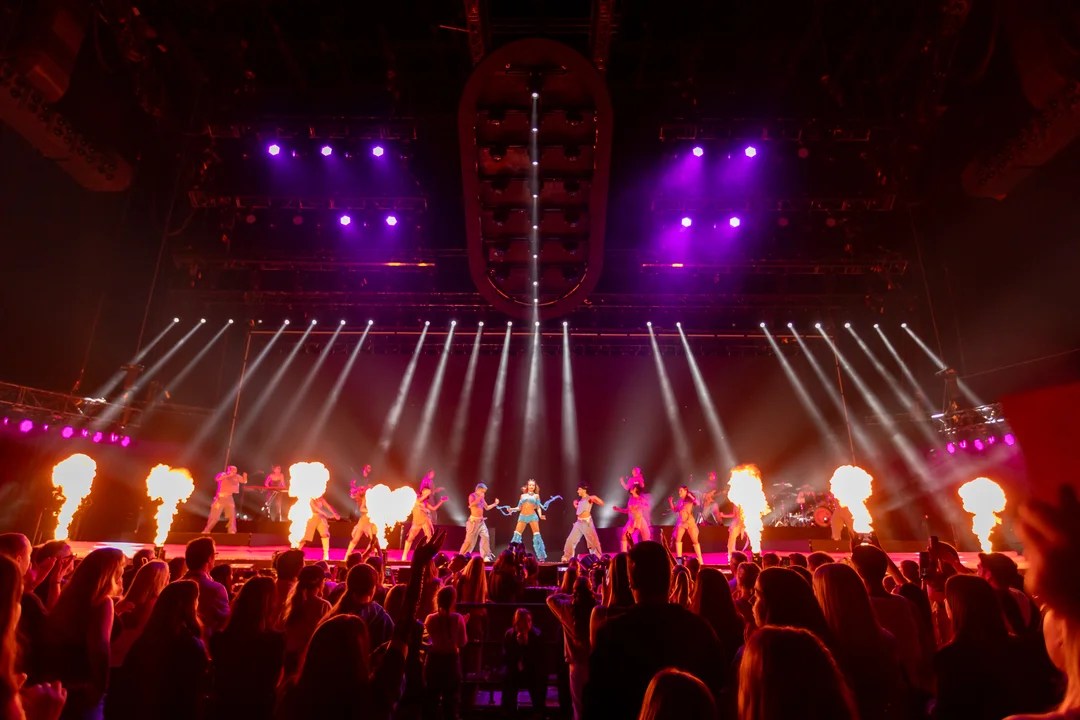 Lo que vimos en las siguientes dos horas fue un show internacional, con un despliegue pocas veces visto en donde hubo hasta un escenario en el que parecía estar volando por sobre su público. Los looks llenos de color, de brillos, por supuesto, y con un estilo muy marcado. Propuso en su show un viaje de regreso a los inolvidables sonidos de los años 2000, una cápsula del tiempo musical donde reunió de manera impecable pop, R&B, dance y hip-hop con ritmos modernos, logrando una fusión perfecta. Los ya clásicos de su repertorio se intercalaban con los flamantes grandes éxitos virales de «.mp3». Era como ver a Britney Spears en su época dorada.