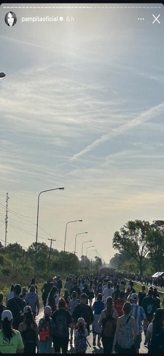 Como cada año que pasa, Pampita fue parte de la Peregrinación a Luján, en esta ocasión junto a un grupo cercano de amigas. A través de sus redes sociales y en medio del escándalo por su separación, la modelo se mantuvo activa durante el recorrido e hizo algunas fotografías al llegar a la Basílica.