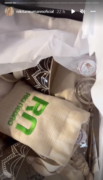 A través de redes sociales, la también conductora mostró los productos que le envió el Ejecutivo rionegrino como recuerdo de su visita a la región.