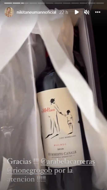La modelo Nicole Neumann, en pareja con el automovilista rionegrino Manuel Urcera, mostró en redes sociales el gesto que tuvo para con ella el gobierno de Arabela Carreras, tras su llegada a la capital para presenciar la disputa deportiva del Turismo Carretera durante el último fin de semana.