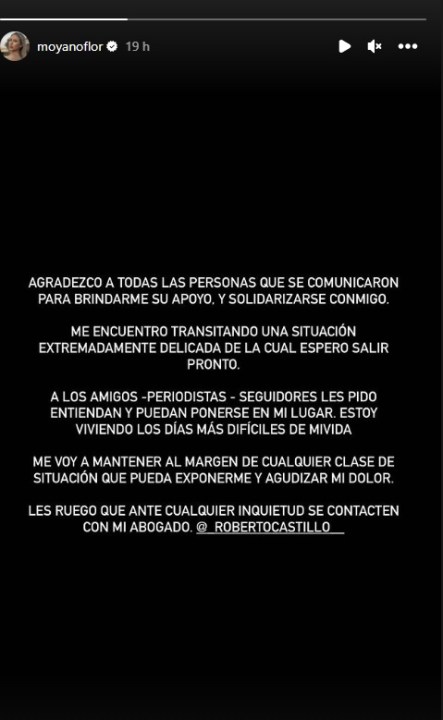 El comunicado de Flor Moyano, tras conocerse la denuncia pública.-