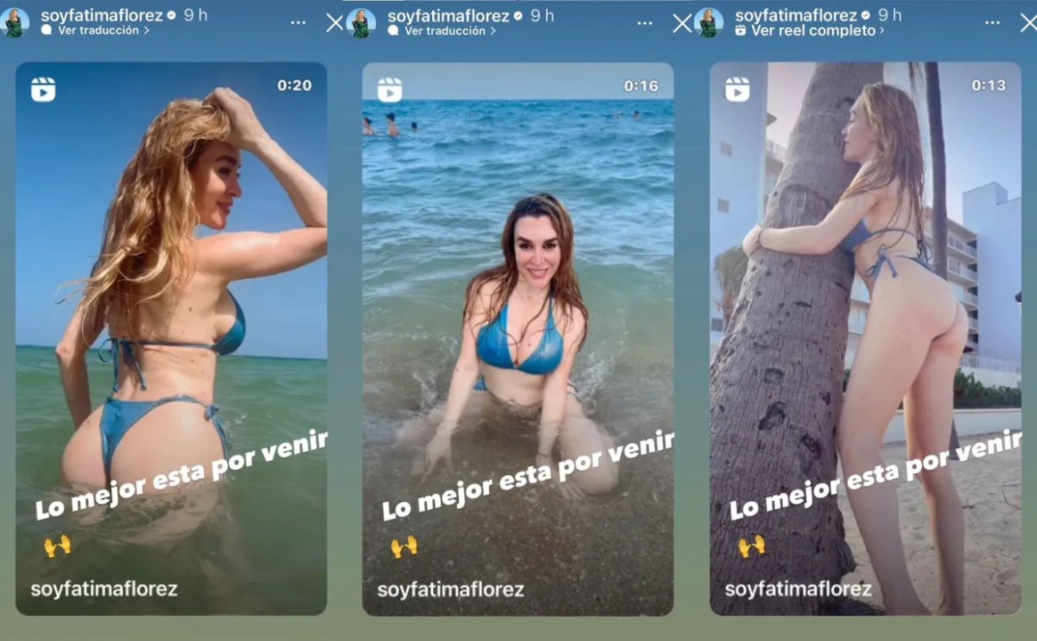 Fátima subió a sus historias virtuales un reel publicado originalmente el 25 de julio de 2023 durante un viaje a Miami, Estados Unidos. Junto al video escribió sutilmente: «Lo mejor está por venir», donde se la posando sensual en la playa con un diminuto traje de baño dejando al descubierto su escultural silueta.