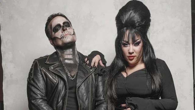 La imagen los muestra a ambos en un look rockero, Evelyn con estilo gótico, cabello llovido, cuero y un make up pálido, mientras el hijo de Carmen Barbieri, en línea con el outfit, luce un maquillaje de calavera y el posteo es acompañado por el texto: “El año en que aprendí a volar”.