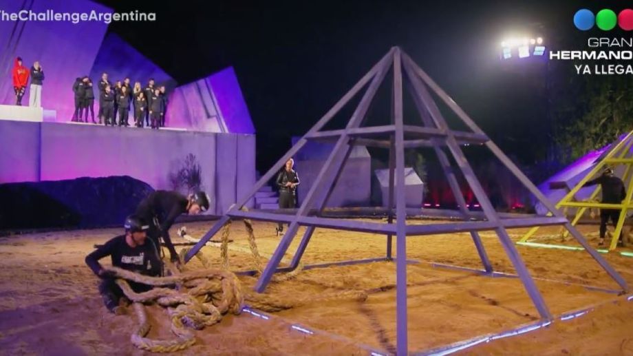 El desafío consistió en que cada pareja tuviera un tiempo estimado para pasar una cuerda muy pesada entre una pirámide de hierro, y luego las parejas intercambiaron de lugar para desatar la cuerda el equipo contrincante enredó.