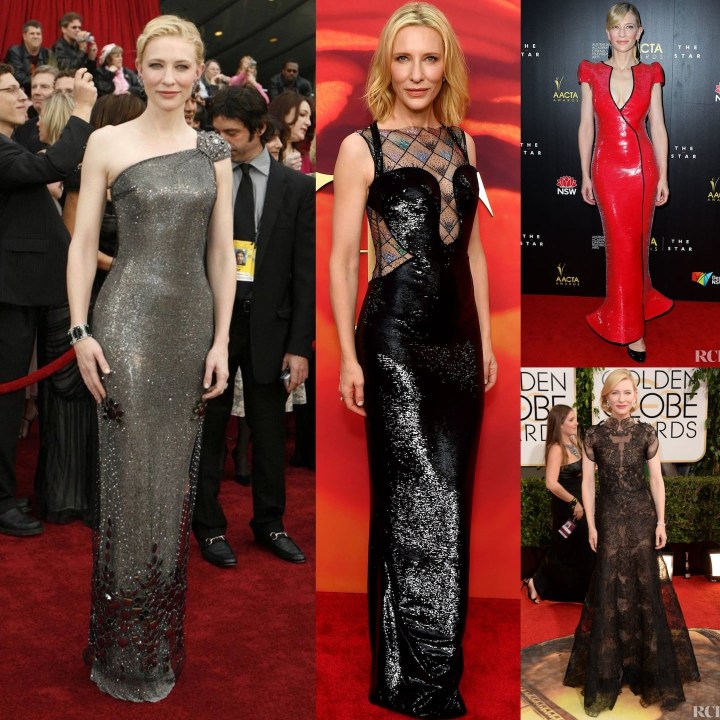 - Cate Blanchett: fiel a Armani, brilló en varias ediciones de los Oscar. En 2007, cuando estuvo nominada en dos categorías, se destacó por la sofisticación de sus diseños.