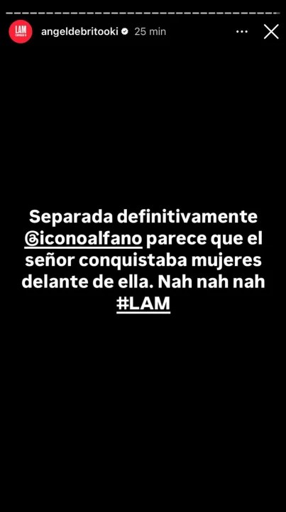 Por otra parte, el periodista Ángel de Brito contó en su cuenta de Instagram la razón detrás de la separación de Alfano con el uruguayo: “Separada definitivamente Graciela Alfano. Parece que el señor conquistaba mujeres delante de ella. #LAM. Nah Nah Nah”.