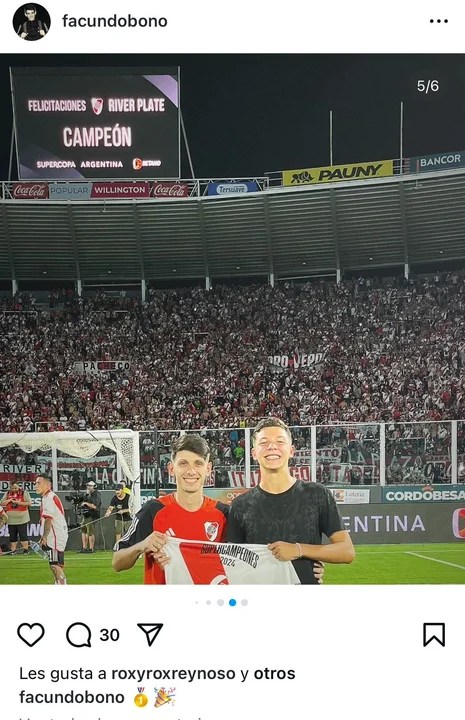 “A los pocos días que mi vieja me revela mi verdadera identidad, Martín se pone en contacto conmigo y empezamos a tener una relación a distancia por la pandemia, desp contacto con sus hermanas en relación de tias, desp la aceptación de Eva, luego la llegada a argentina a River, lo que nos facilitó tener contacto al menos casi una vez por mes, desp el que me hayan abierto las puertas para conocer al resto de la familia… Bastian era mi mayor interés… tener un hermanito varón me hacía mucha ilusión y la verdad que al pendejo lo quiero una banda, hablamos muy seguido y nos compartimos bastante… las mas peques son unas dulces y compartimos algunos muy lindos momentos.. y Eva que me sorprendio con la calidez realmente genuina con la que me recibió y con los gestos que fue teniendo, más de una vez me sorprendió con un mensajito transmitiéndome cariño y tranquilidad, conozco tmb a sus padres…”, reveló Facundo.